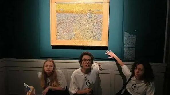 2022年11月4日,幾名氣候問題抗議者向展出中的梵高畫作《播種者》潑灑豌豆湯,并將自己的手粘在墻上。