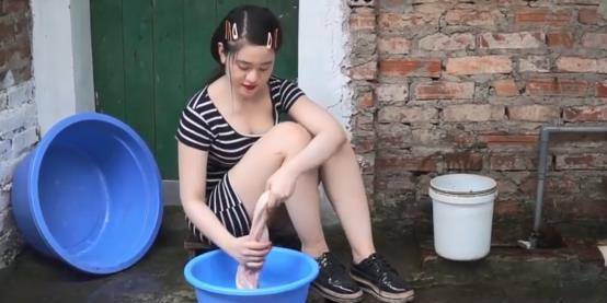 一個中國小伙在放假的時候,就來了越南旅游。他在來旅游之前,就有不少同事跟他說越南這邊美女多,等來到這邊后,發現確實如此,越南這邊有很多長相清秀的女孩子。而他在逛的時候,無意間看到了一個越南美女正在做飯。這個越南美女直接就坐在家門口,用井水洗著肉,在洗好后,還拿出砧板來切。