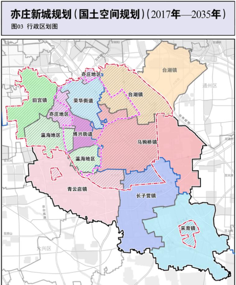 亦莊新城行政區劃圖。圖/《亦莊新城規劃(國土空間規劃)(2017年-2035年)》