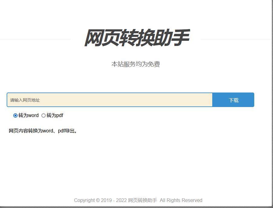 第一個網(wǎng)頁轉(zhuǎn)換助手,這是一個完全免費的在線下載某度文庫的一個工具,包括 VIP 文檔,在這里完全免費下載。整個頁面非常的簡單,只有一個搜索框,加一個下載按鈕,選擇好輸出轉(zhuǎn)化格式,可以是 word 文檔,也可以是 PDF 文件,直接加載就行。